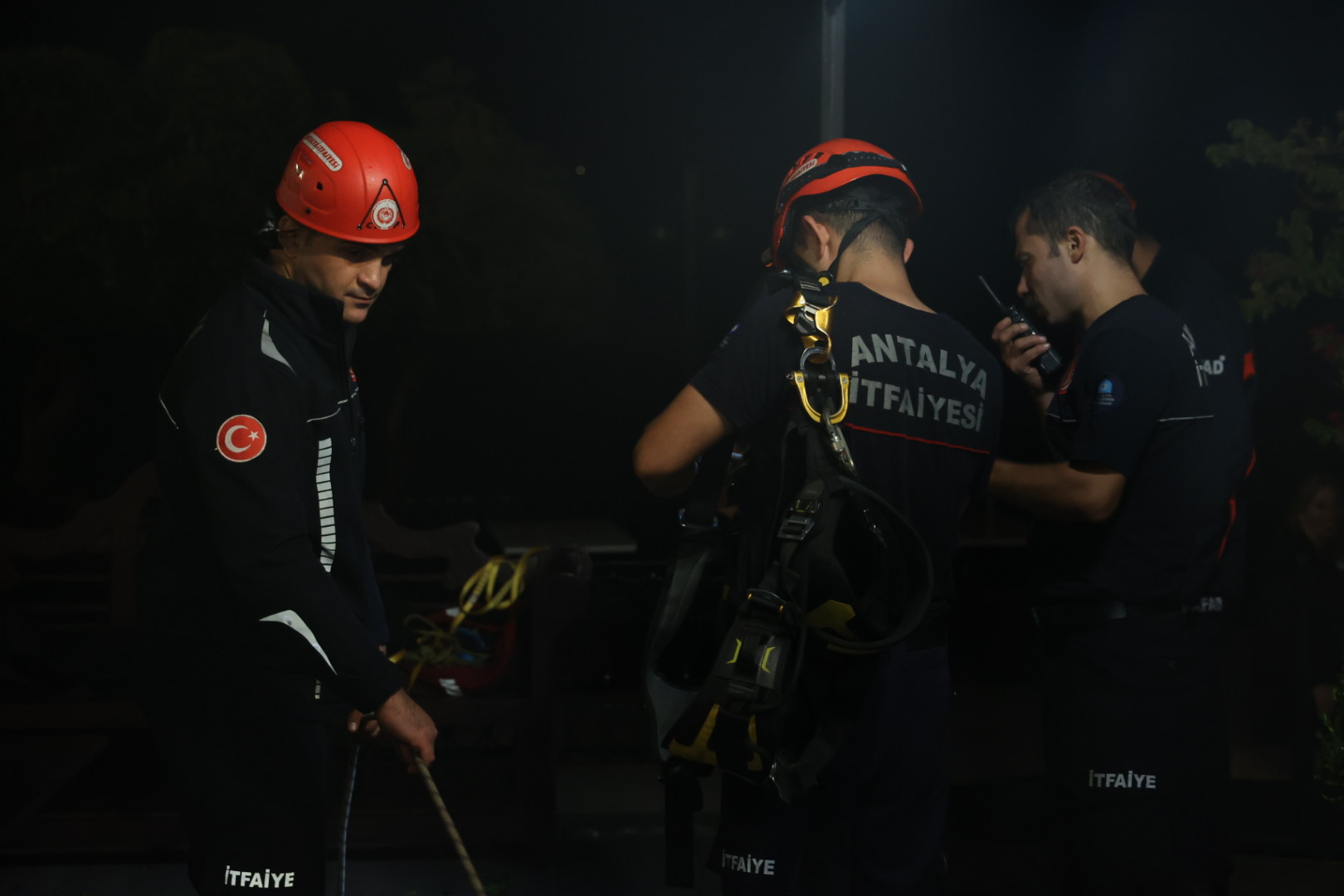 Aşağı inen ekipler mahsur kalan mağdurları buldu. Daha sonra Antalya Büyükşehir Belediyesi’nde görevli itfaiye erleri aşağı inerek mahsur kalan 2 kişiyi halatla bağladı. Mağdur vatandaşlar yukarı çekilerek kurtarıldı.