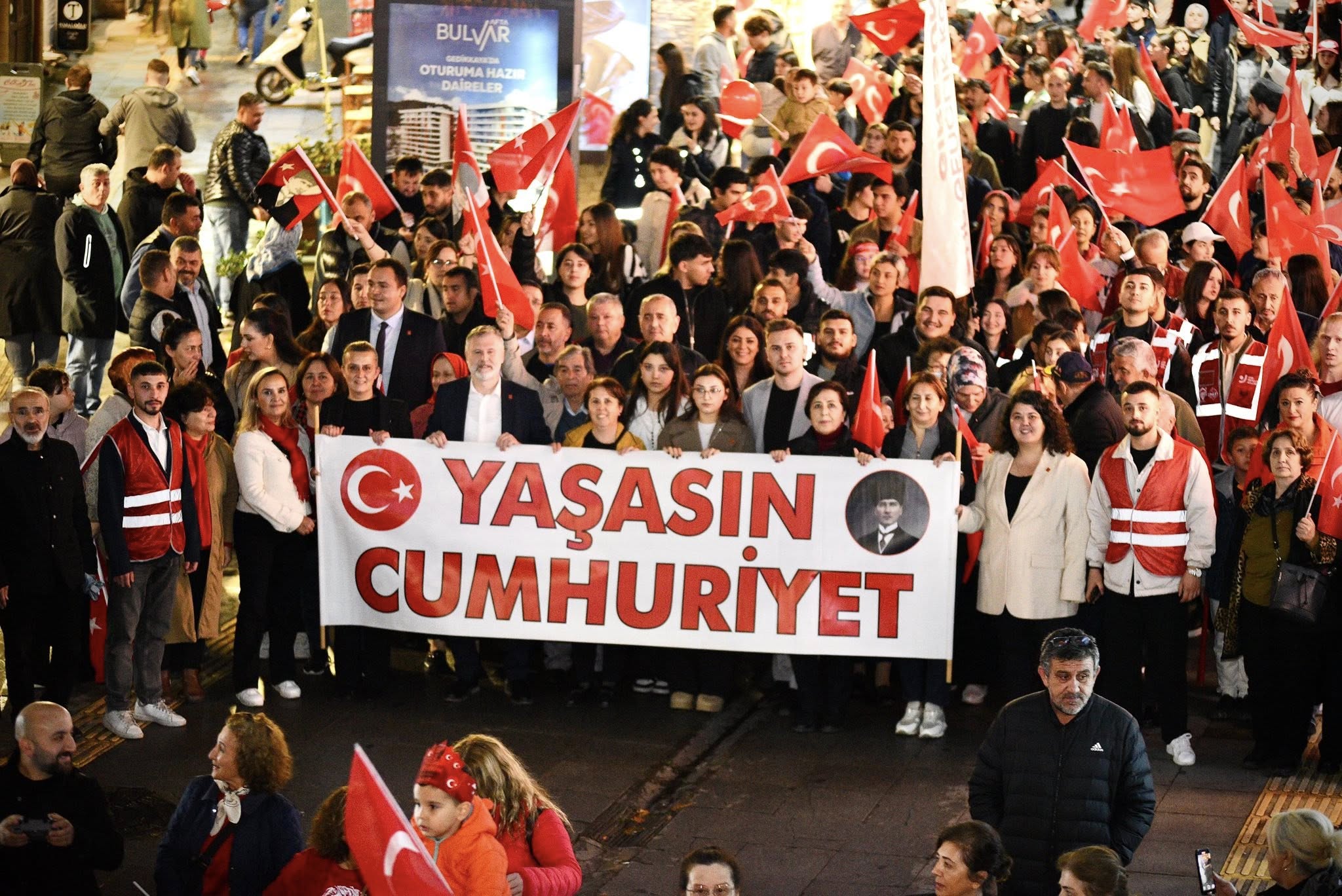 Cumhuriyet'in 102. kuruluş yıl dönümü, Giresun’da coşkuyla kutlandı. Etkinlik kapsamında Giresun Belediyesi tarafından düzenlenen Fener Alayı ve Cumhuriyet Yürüyüşü, vatandaşların yoğun katılımıyla gerçekleştirildi.