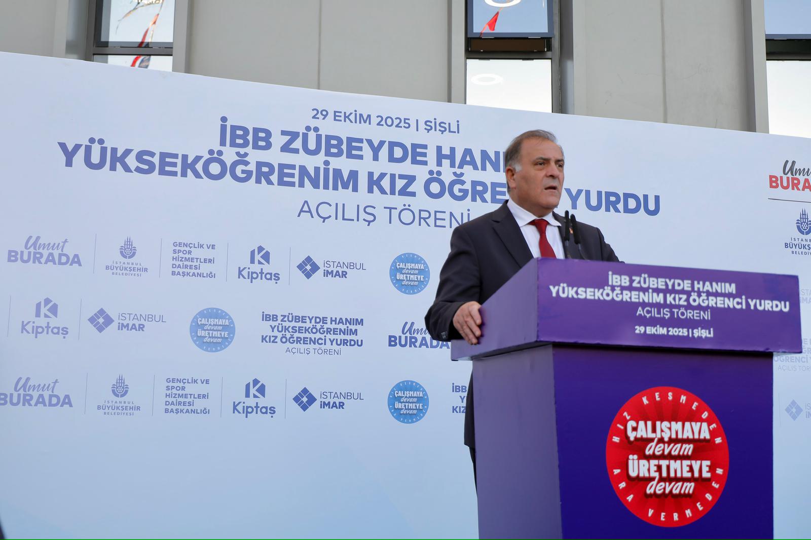 İBB Başkanvekili Aslan, 16. yurdu Gazi Mustafa Kemal Atatürk’ün gençlere emanet ettiği Cumhuriyet’in 102. yılında açmanın mutluluğu içinde olduklarını belirterek, “Ekrem Başkanımız, bir İstanbul hayal etti. Çocukları mutlu, kadınları güvende, büyükleri sağlıklı, gençleri kaygısız. Bu hayali gerçek de kıldı.” diye konuştu.